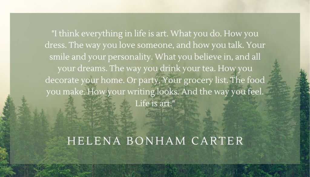 “I think everything in life is art. What you do. How you dress. The way you love someone, and how you talk. Your smile and your personality. What you believe in, and all your dreams. The way you drink your tea. How you decorate your home. Or party. Your grocery list. The food you make. How your writing looks. And the way you feel. Life is art.”